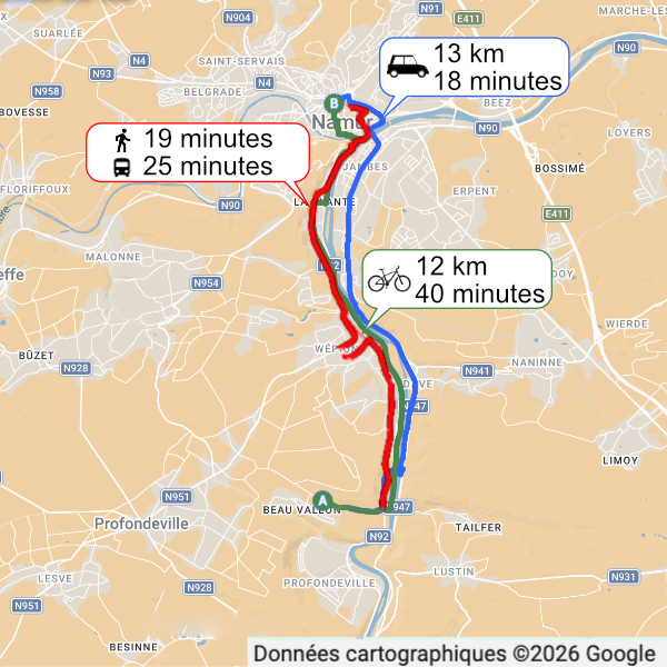 Le lieu est facilement accessible depuis la gare de Namur notamment en vélo (40 minutes), les bus en bas de la rue (bus réguliers, même le dimanche), ou la voiture (18 minutes). Il se situe à 1 gros kilomètre de la Meuse et de son chemin de halage, dans un petit écrin de verdure.